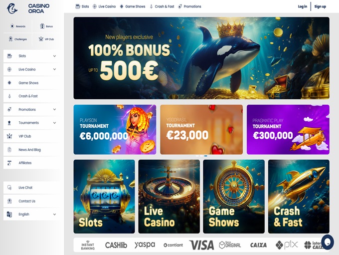 Se a expressão "sem requisitos de apostas" soa como um mito de marketing, o Casino Orca chegou para desafiar tudo o que você pensava saber sobre bônus de cassino online, exatamente como seus sites irmãos: Art Casino e Betroom24. Fundado em 2024 e licenciado em Curaçao (8048/JAZ2021-033) , o Casino Orca mergulha fundo na inovação com promoções totalmente livres de requisitos de apostas , um programa VIP com vários níveis e uma seleção impressionante de mais de 80 provedores de jogos . Este não é apenas mais um cassino de criptomoedas — é uma reinvenção de como os jogos podem ser amigáveis ao jogador.