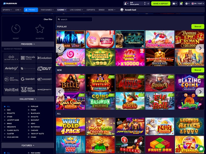 Os bônus e os termos e condições gerais estão claramente listados — recomendamos que você os revise cuidadosamente antes de depositar. O cassino FairPari atende tanto aos entusiastas de jogos de cassino quanto aos de esportes.