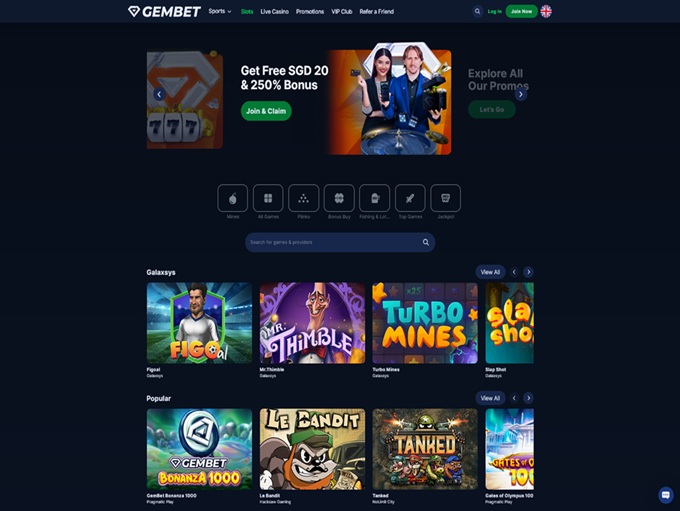 O Gembet Casino está claramente otimizado para os mercados de Singapura e Malásia, oferecendo: