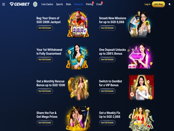 Os jogadores devem sempre verificar os Termos e Condições dos Bônus e, como um dos melhores cassinos online em Singapura, o Gembet possui Termos e Condições transparentes. Também existem Bônus sem Depósito para jogadores de Singapura.