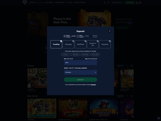 O Gembet Casino oferece diversos métodos de pagamento seguros, tornando-o conveniente para jogadores em Singapura e na Malásia. O Gembet é um cassino online com dinheiro real em Singapura e na Malásia, portanto, jogadores dessas regiões têm muitas opções de depósito e saque.