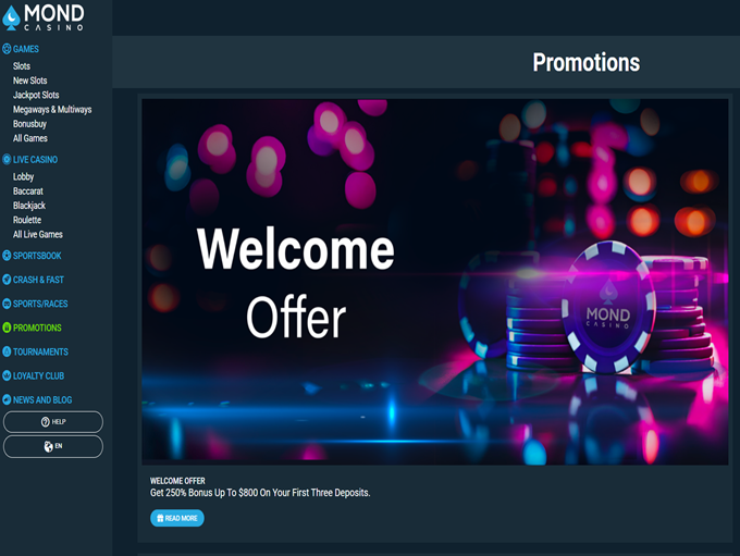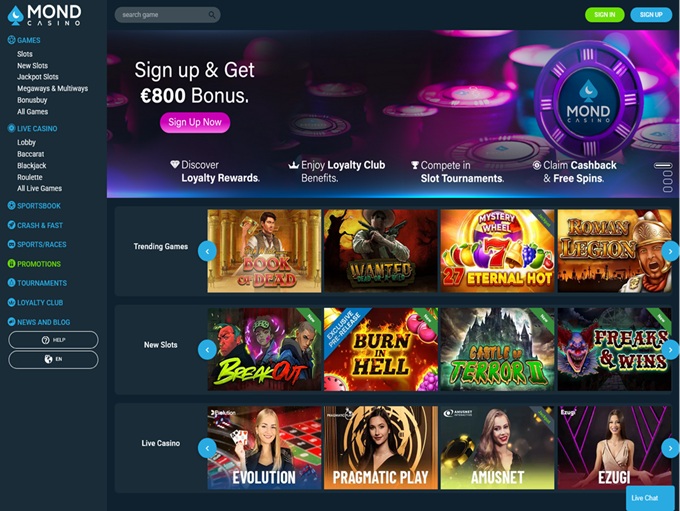 Com mais de 10.000 jogos de mais de 60 fornecedores, o MondCasino é um paraíso para todos os tipos de jogadores. Mais de 600 mesas, incluindo Evolution e Pragmatic Live.