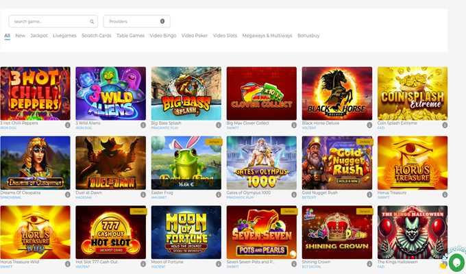 Nossa opinião : De caça-níqueis e jackpots a video poker, jogos ao vivo e video bingo , há muito para explorar. Gostei da seção "Novos Jogos", que mantém as coisas sempre interessantes, e do sistema de busca/filtro, que facilitou a localização dos títulos mais bem avaliados. Experimentei jogos populares como Gonzo's Quest Megaways e Razor Shark, e tudo carregou rapidamente com gráficos nítidos.